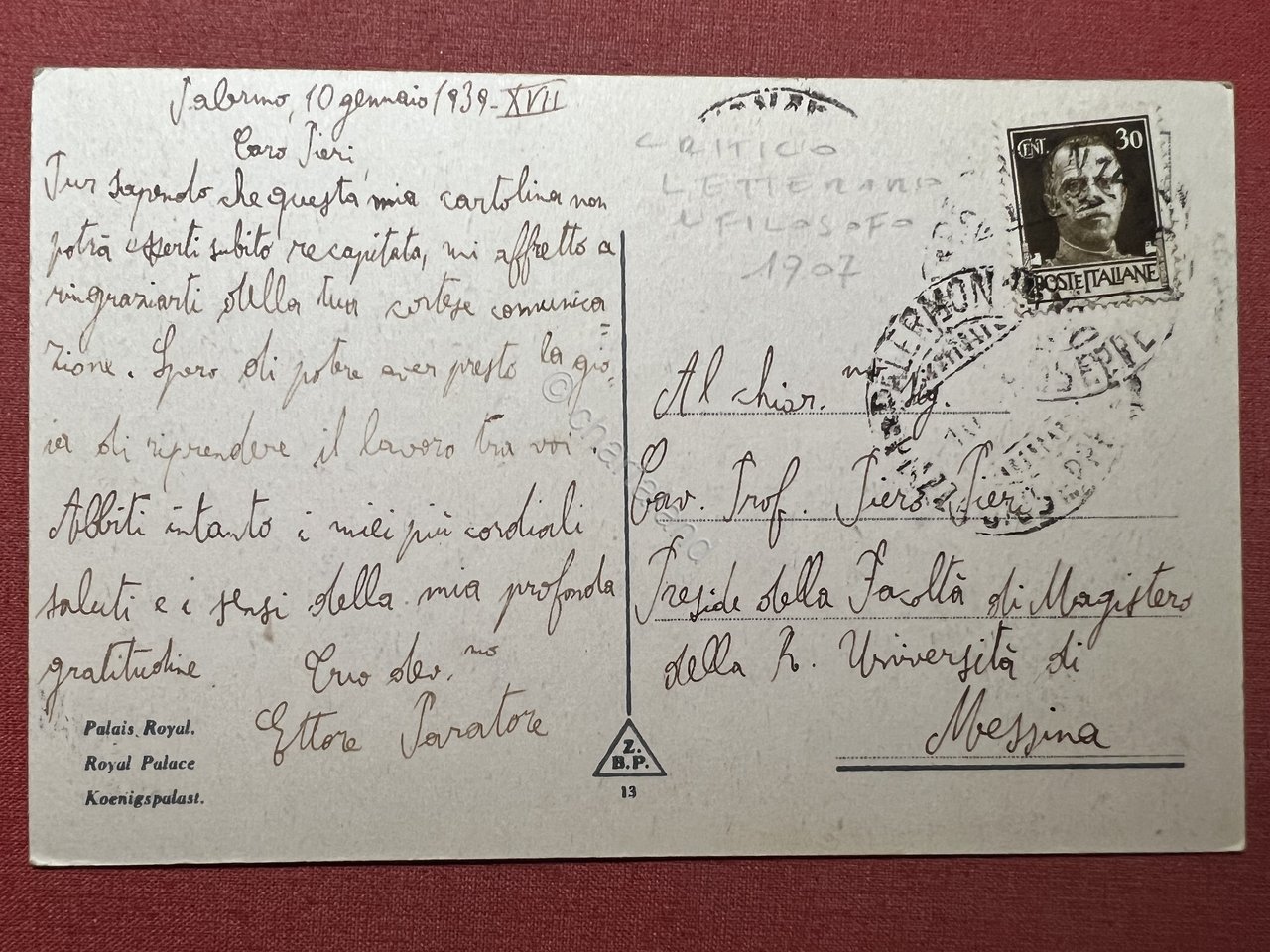 Cartolina - Palermo - Palazzo Reale - 1939 | Cartoline |
