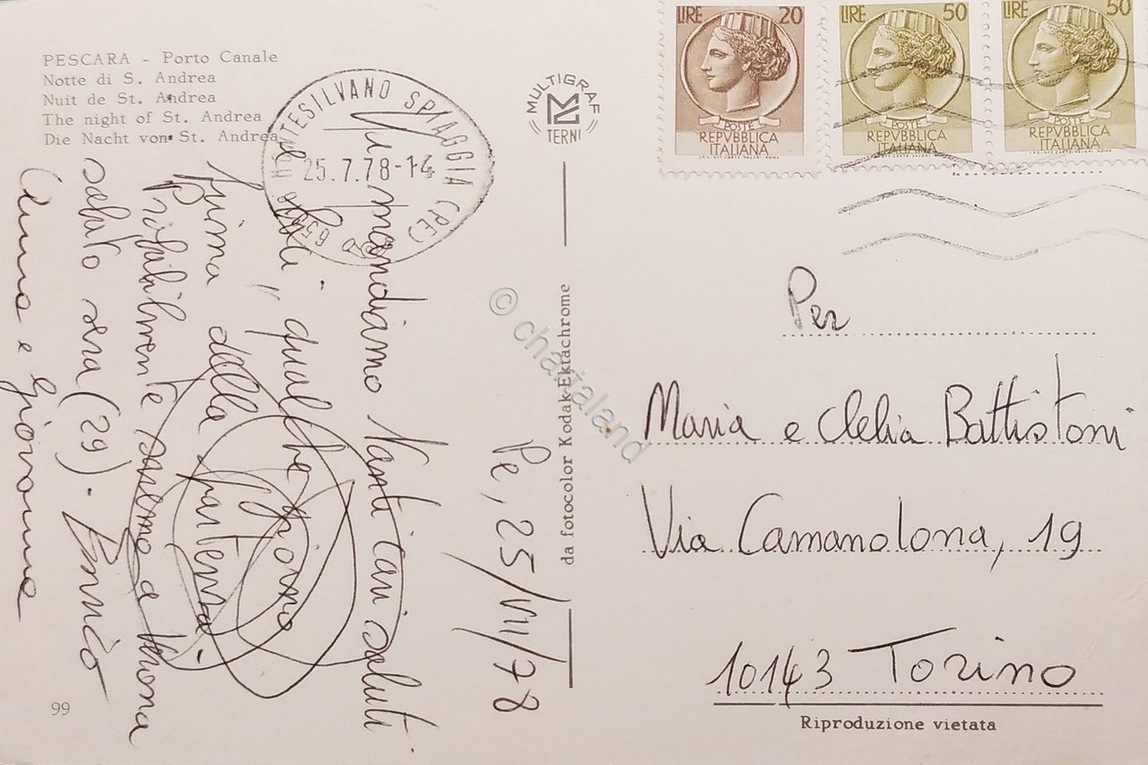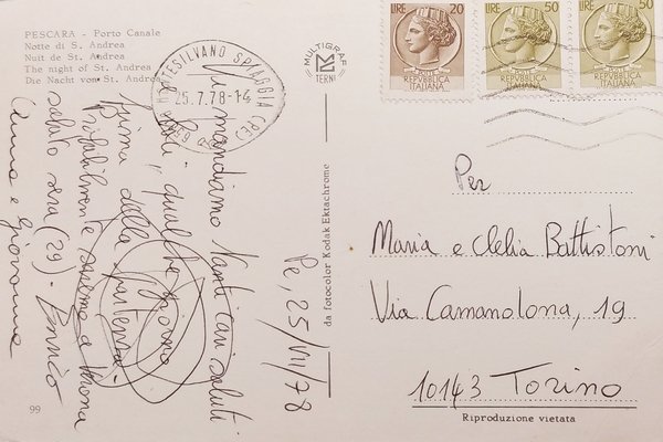Cartolina - Pescara - Porto Canale - Notte di S. Andrea - 1978 | Cartoline |