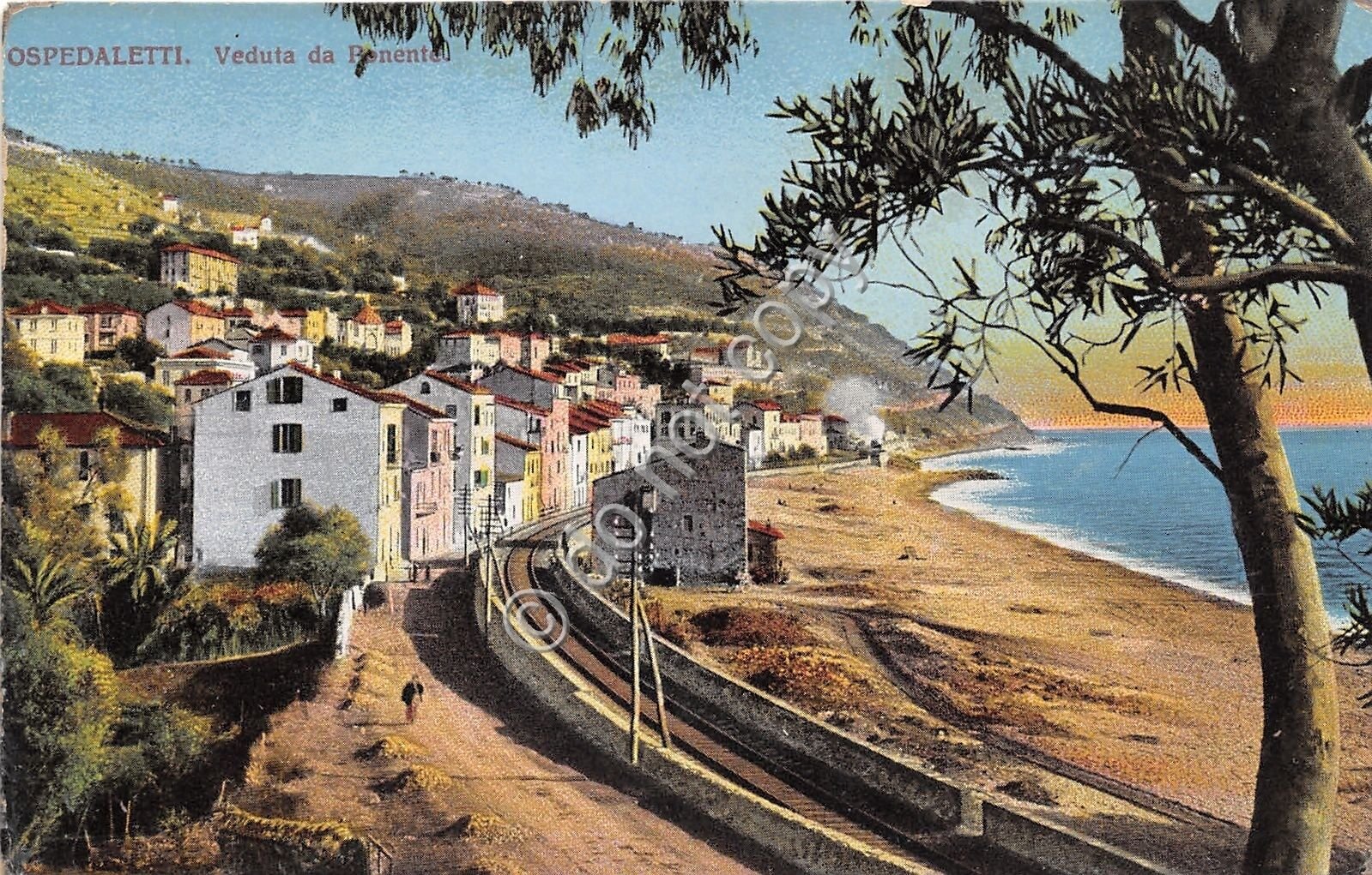Cartolina - Postcard - Illustrata - Ospedaletti - panorama - ferrovia anni '20