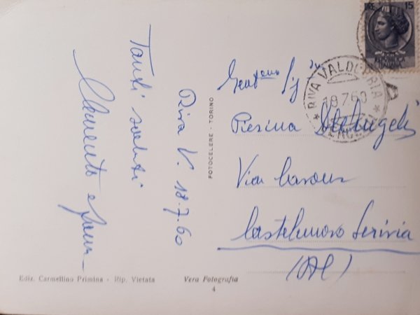 Cartolina - Riva Valdobbia - Frazione Vogna di Là ed il Monte Rosa - 1960 | Cartoline |