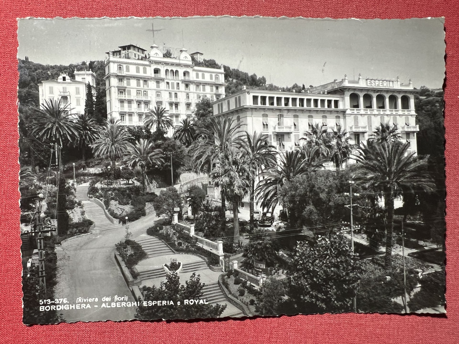 Cartolina - Riviera dei Fiori - Bordighera - Alberghi Esperia e Royal - 1950 ca.