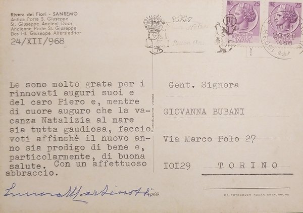 Cartolina - Riviera dei Fiori - Sanremo - Antica Porta S. Giuseppe - 1968 | Cartoline |