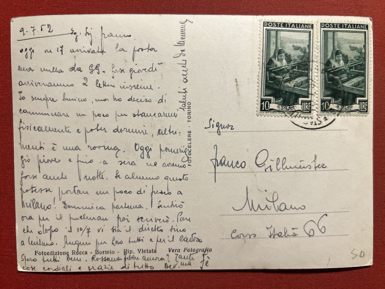 Cartolina formato grande - viaggiata - databile 1952.