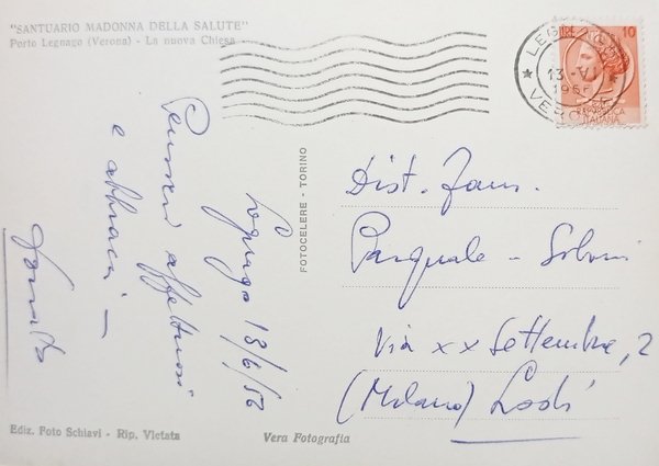 Cartolina - Santuario Madonna della Salute - Porto Legnago ( Verona ) - 1956 | Cartoline |