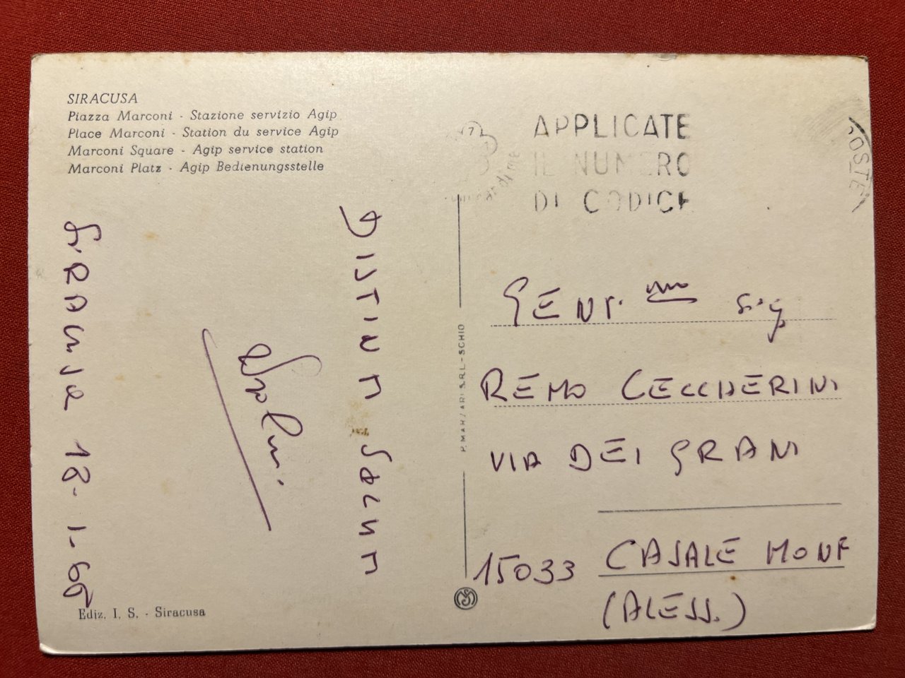 Cartolina - Siracusa - Piazza Marconi - Stazione Servizio Agip - 1966 | Cartoline |