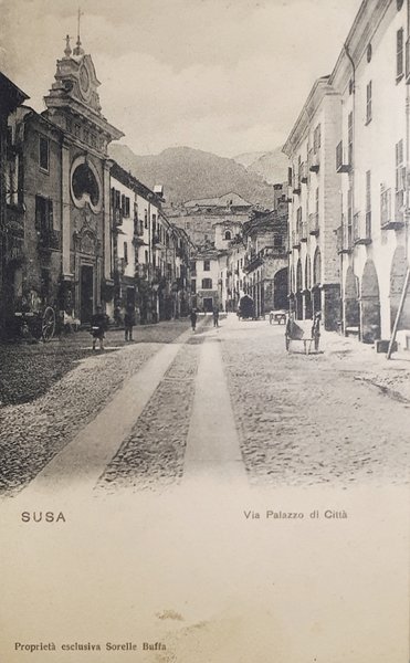 Cartolina - Susa - Via Palazzo di Città - 1900 ca. | Cartoline |