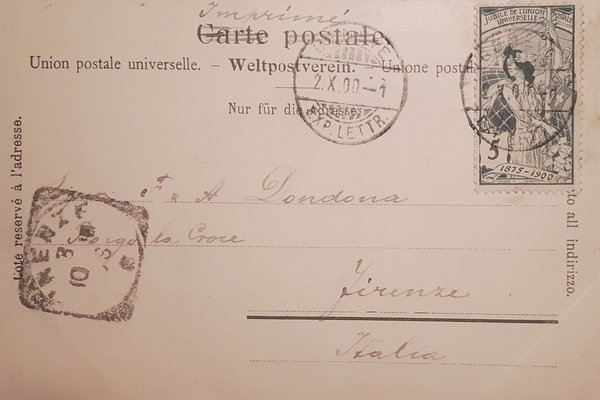 Cartolina formato piccolo - viaggiata - datata 1900.