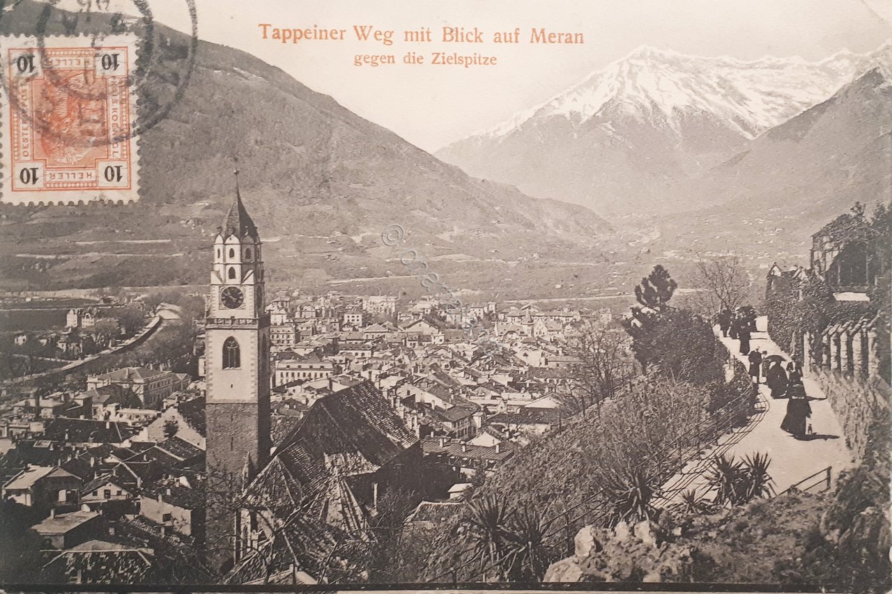 Cartolina - Tappeinerweg mit Blick auf Meran gegen die Zielspitze - Merano 1906 | Cartoline |