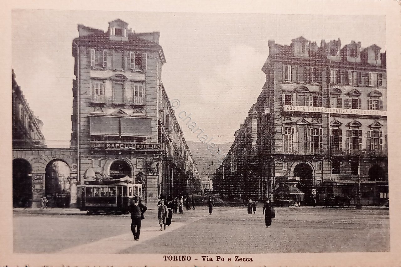 Cartolina - Torino - Via Po e Zecca - 1920 ca.