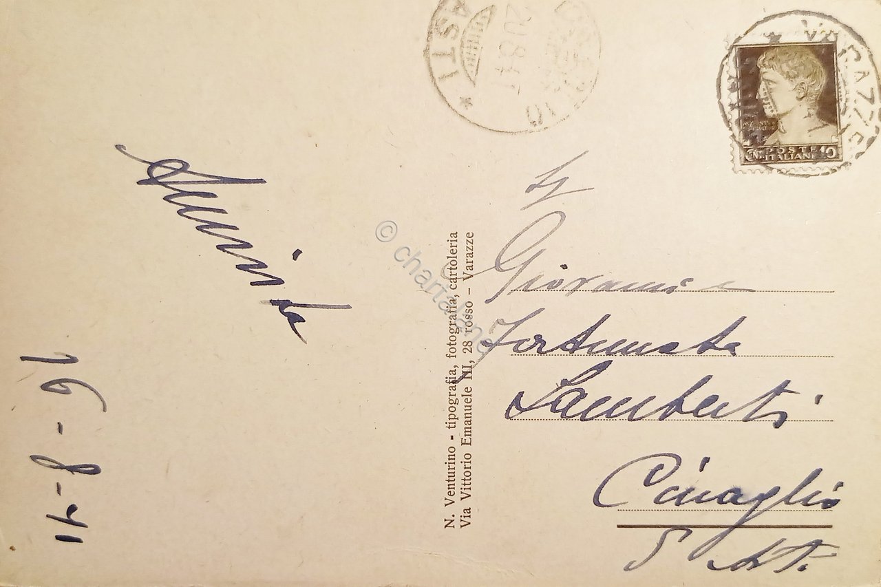 Cartolina - Varazze - Giardini Pubblici 1941 | Cartoline |