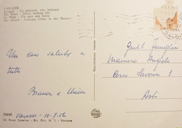Cartolina - Varazze - Spiaggia - La gioconda vita balneare - 1956