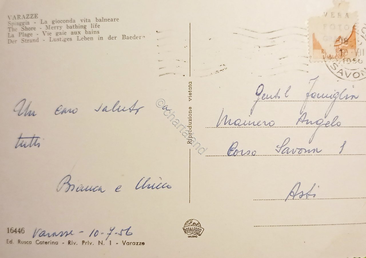 Cartolina - Varazze - Spiaggia - La gioconda vita balneare - 1956 | Cartoline |