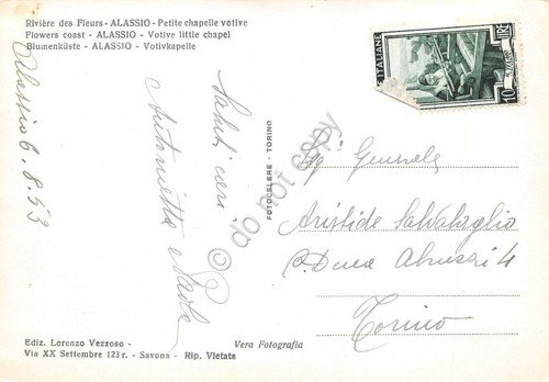 Cartolina Alassio Cappelletta Votiva barche a vela 1953 (Savona) | Cartoline |