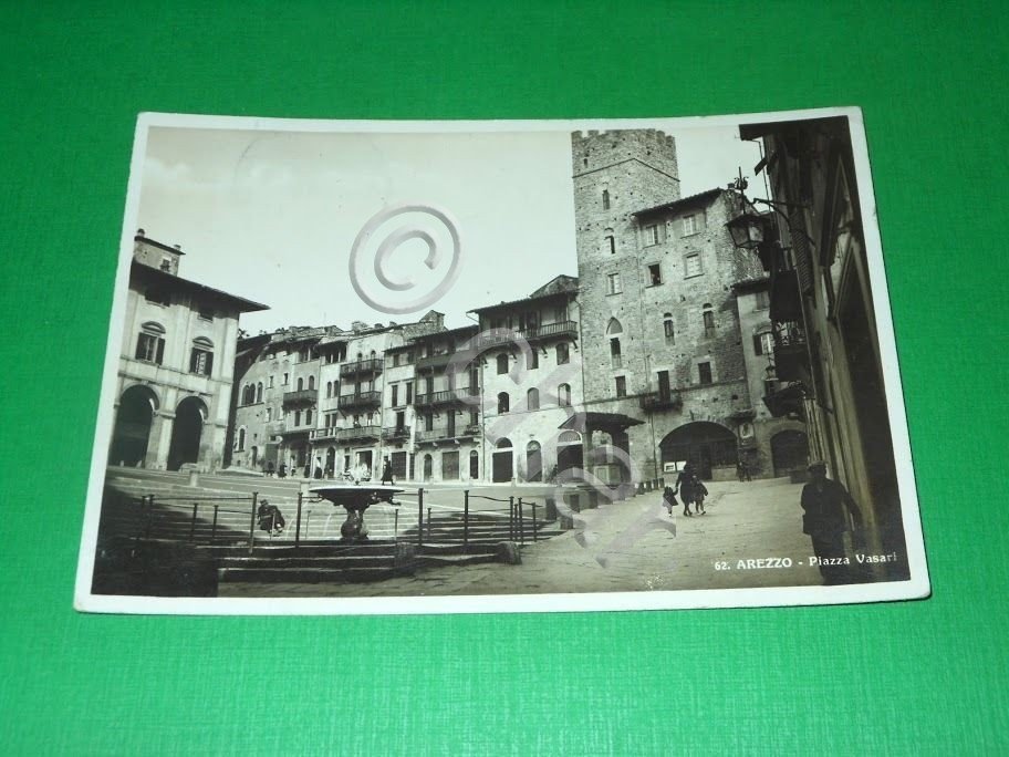 " *** Cartolina Arezzo - Piazza Vasari. La cartolina è viaggiata. Datata 1939 ca. Formato grande. Per appassionati studiosi e collezionisti
