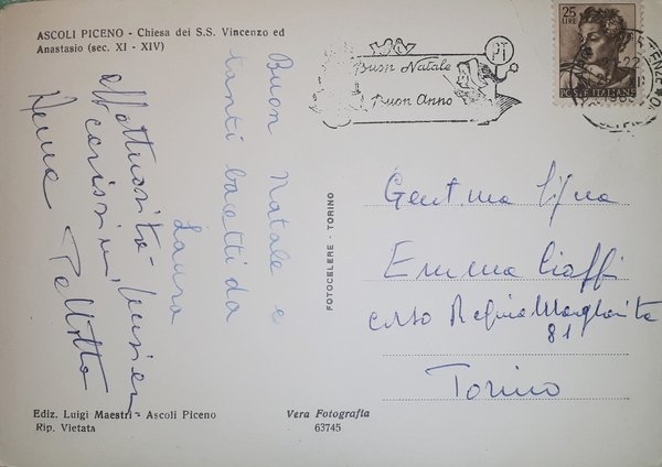 Cartolina - Ascoli Piceno - Chiesa dei S. S. Vincenzo ed Anastasio - 1963