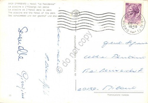 Cartolina Baia d'Argento Hotel La Residence Piscina e albergo nel parco 1969