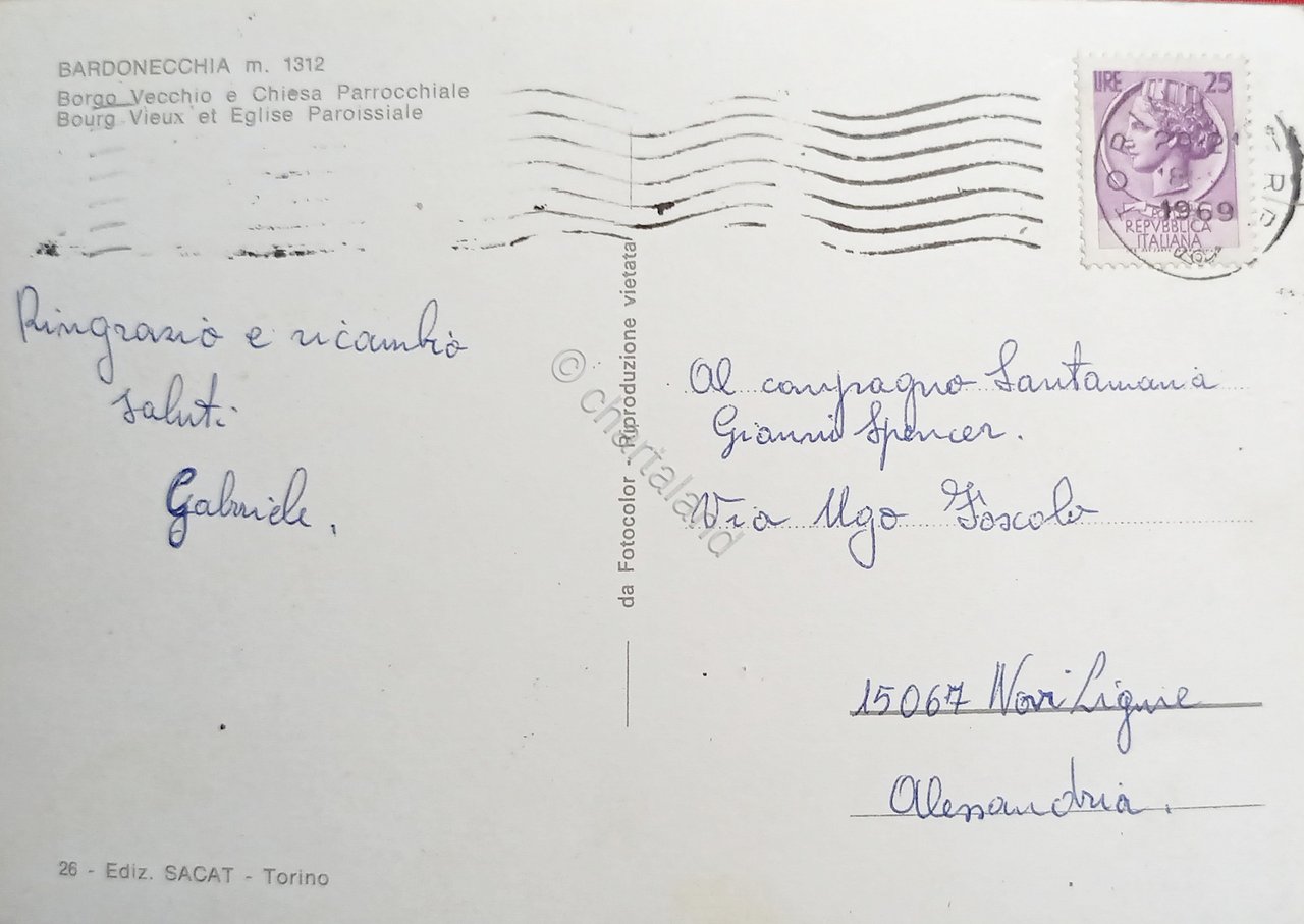 Cartolina - Bardonecchia - Borgo Vecchio e Chiesa Parrocchiale - 1969 | Cartoline |