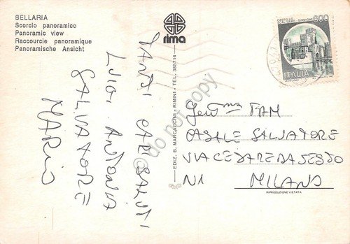 Cartolina Bellaria Panorama parziale e barche