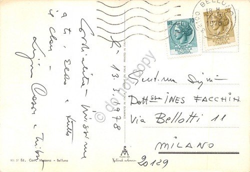 Cartolina Belluno 5 vedute notturno