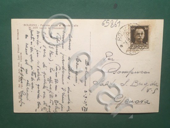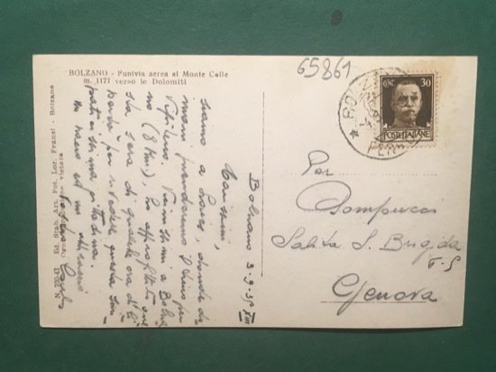 Cartolina Bolzano - Funivia Aerea al Monte Celle - 1939