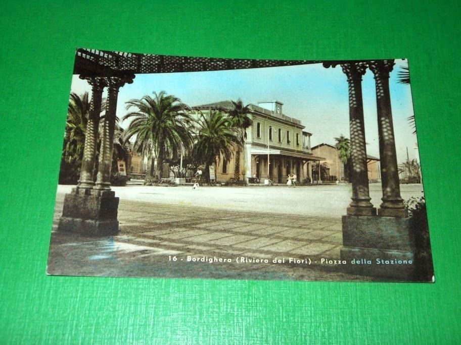 " *** Cartolina Bordighera - Piazza della Stazione. La cartolina non è viaggiata. Databile 1955 ca. Formato grande. Per appassionati studiosi e collezionisti