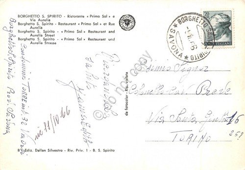 Cartolina Borghetto Santo Spirito Ristorante Primo Sol e Via Aurelia 1966 | Cartoline |