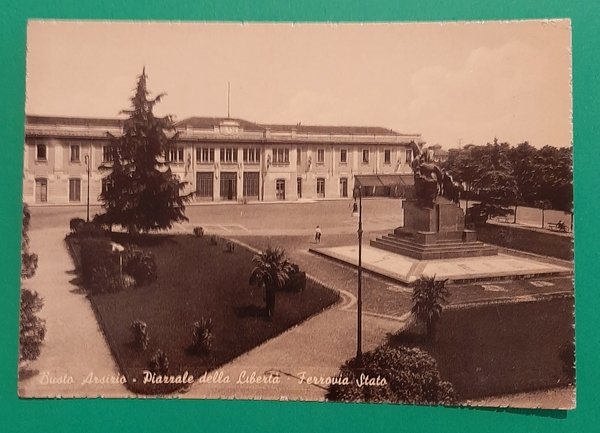 Cartolina Busto Arsizio - Piazzale della Libertà - Ferrovia Stato - 1965