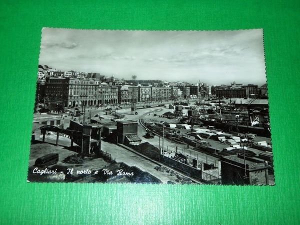 Cartolina Cagliari - Il Porto e Via Roma 1955 ca. | Cartoline |