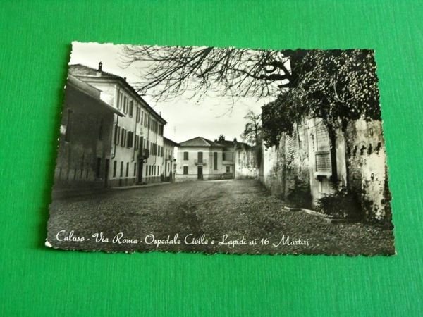 " *** Cartolina Caluso - Via Roma - Ospedale Civile e Lapidi ai 16 Martiri. La cartolina non è viaggiata. Databile 1950 ca. Formato grande. Rif. numero 5149 Per appassionati, studiosi e collezionisti