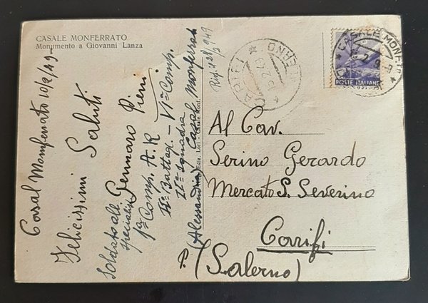 Cartolina Casale Monferrato - Monumento a Giovanni Lanza - 1949 | Cartoline |