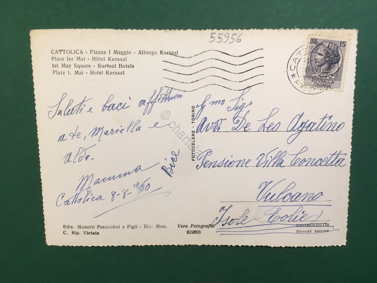 Cartolina Cattolica - Piazza I Maggio - Albergo Kursaal - 1960