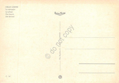 Cartolina Celle Ligure spiaggia e passeggiata piccole grinze (Savona)