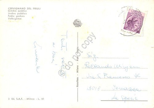 Cartolina Cervignano del Friuli Giardini Pubblici ED SAF