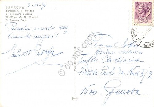 Cartolina Chiavari Basilica Santo Stefano 1970 (Genova)