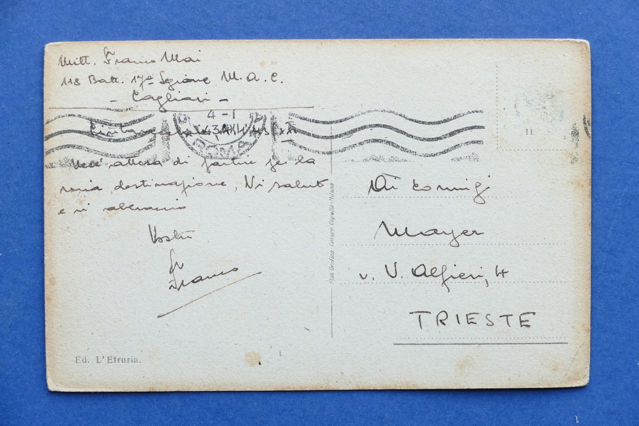 Cartolina Civitavecchia - Piazza Vittorio Emanuele e Cattedrale - 1943 1943 Cartolina formato piccolo - viaggiata Condizioni buone, come da foto Per appassionati, studiosi e collezionisti
