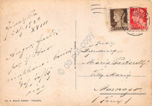 Cartolina Finale Ligure Marina vista dal mare spiaggia barca a vela 1940 | Cartoline |