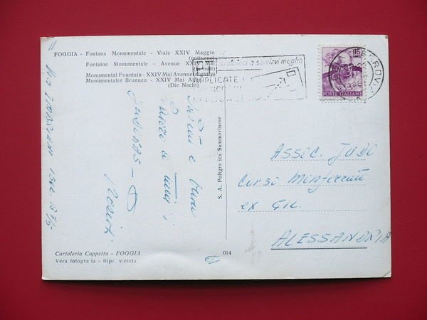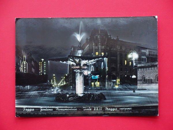 Cartolina Foggia - Fontana Monumentale - Viale XXIV Maggio - Notturno - 1961