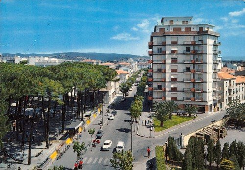 Cartolina Follonica Viale Matteotti strada case anni '80