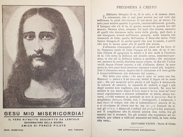 Cartolina Gesù mio Misericordia! Ritratto descritto da Lentulo Governatore 1937