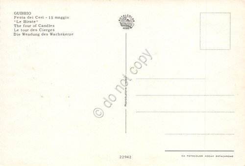 Cartolina Gubbio Festa dei ceri Le Birate animata anni '80