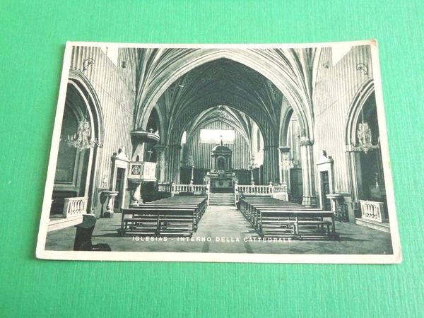 " *** Cartolina Iglesias - Interno della Cattedrale. La cartolina è viaggiata. Datata 1938. Formato grande. Per appassionati, studiosi e collezionisti