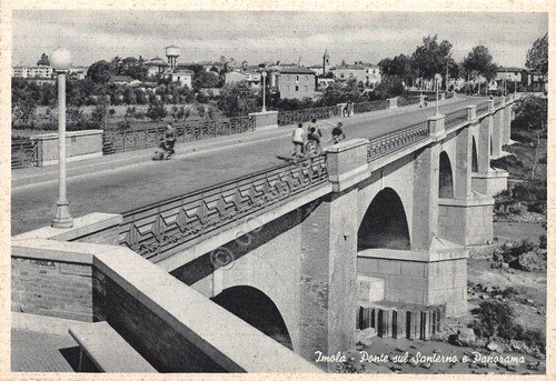 Cartolina Imola Ponte sul Santerno animata bicicletta