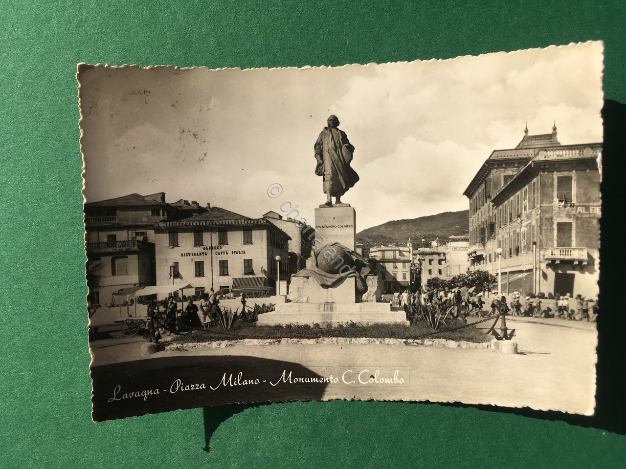 Cartolina Lavagna - Piazza Milano - Monumento C.Colombo - 1955 | Cartoline |