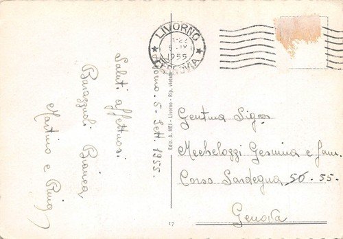 Cartolina Livorno Albergo Palazzo barca a vela 1955