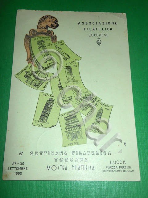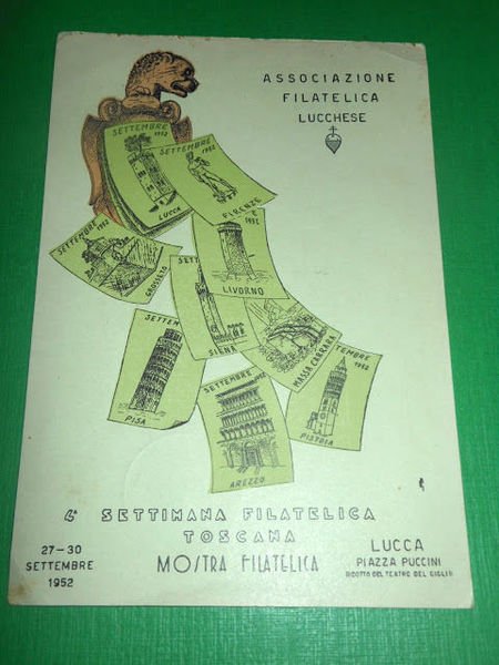 Cartolina Lucca - Associazione Filatelica Lucchese - Mostra Filatelica 1952