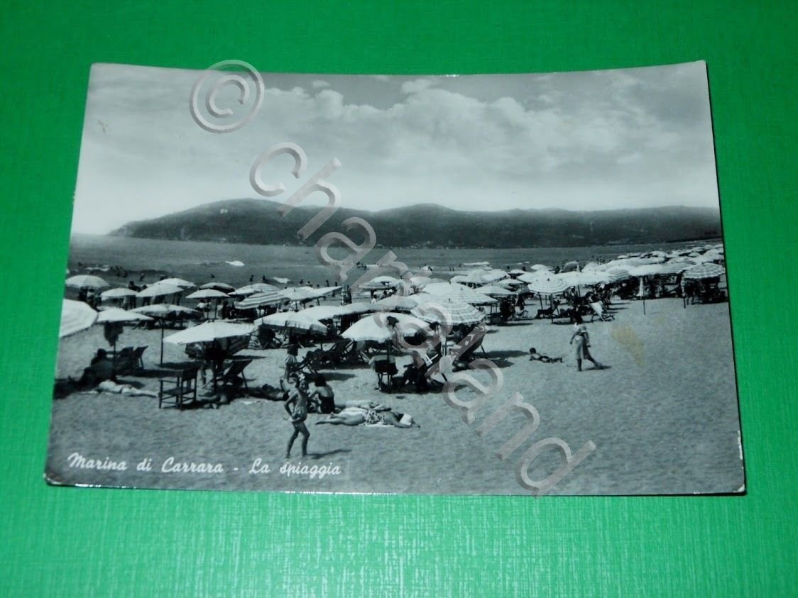 " *** Cartolina Marina di Carrara - La spiaggia. La cartolina è viaggiata. Datata 1952. Formato grande. Per appassionati, studiosi e collezionisti