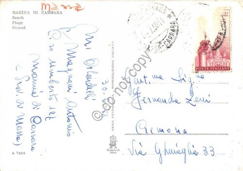 Cartolina Marina di Carrara Spiaggia 1958 | Cartoline |