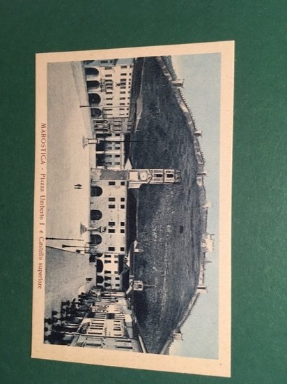 Cartolina Marostica - Piazza Umberto I e Castello Superiore - 1915ca. | Cartoline |