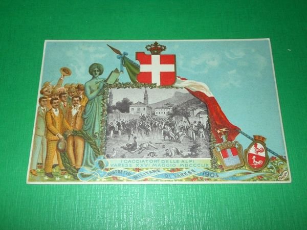 " *** Cartolina Militaria - I Cacciatori delle Alpi - Distretto Militare di Varese. La cartolina non è viaggiata. Databile 1904. Formato piccolo. Per appassionati studiosi e collezionisti