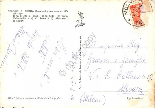 Cartolina Molveno panorama con Lago Dolomiti 1954